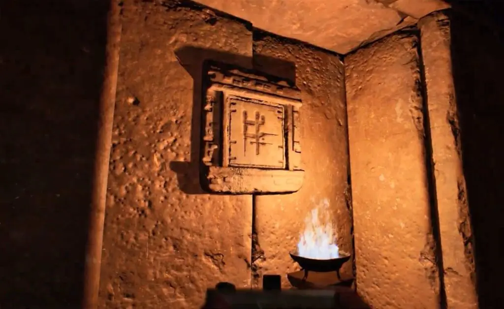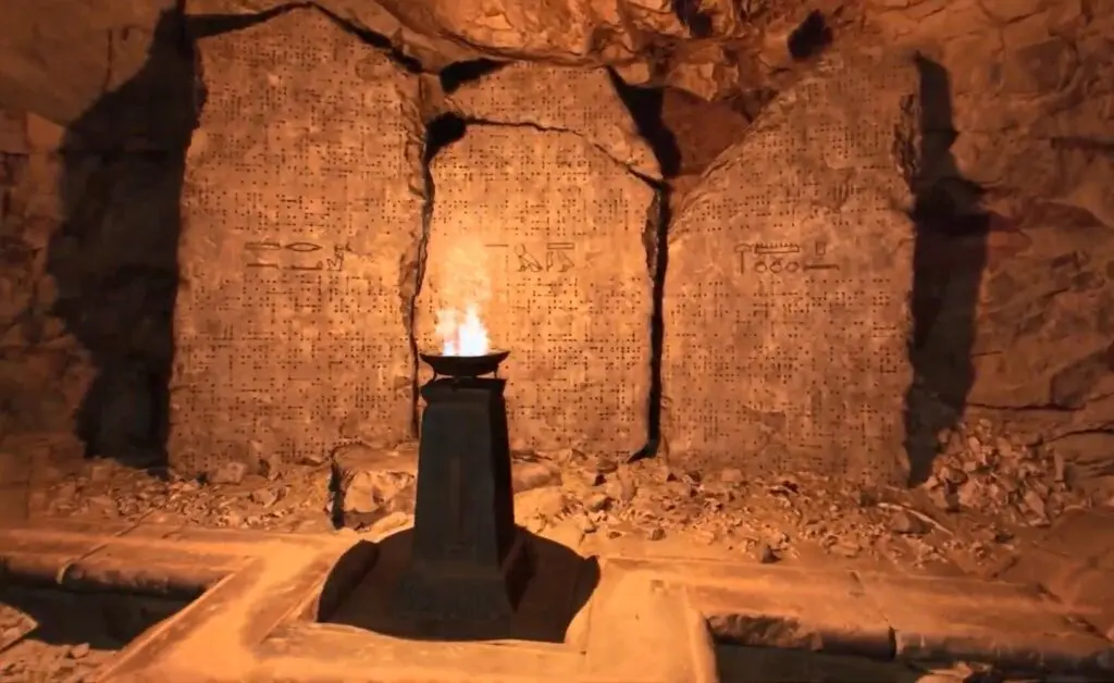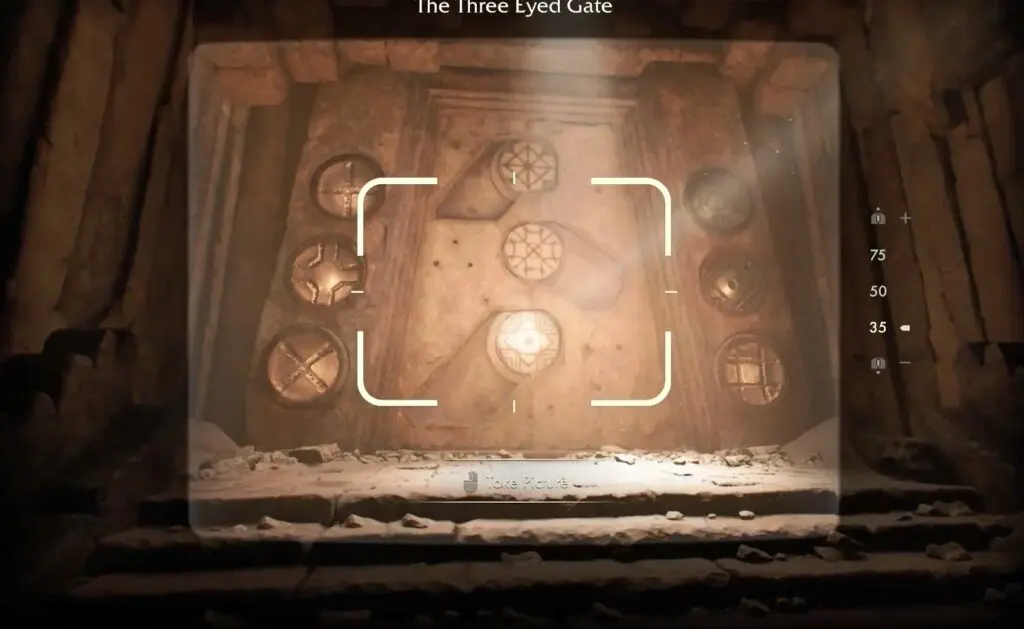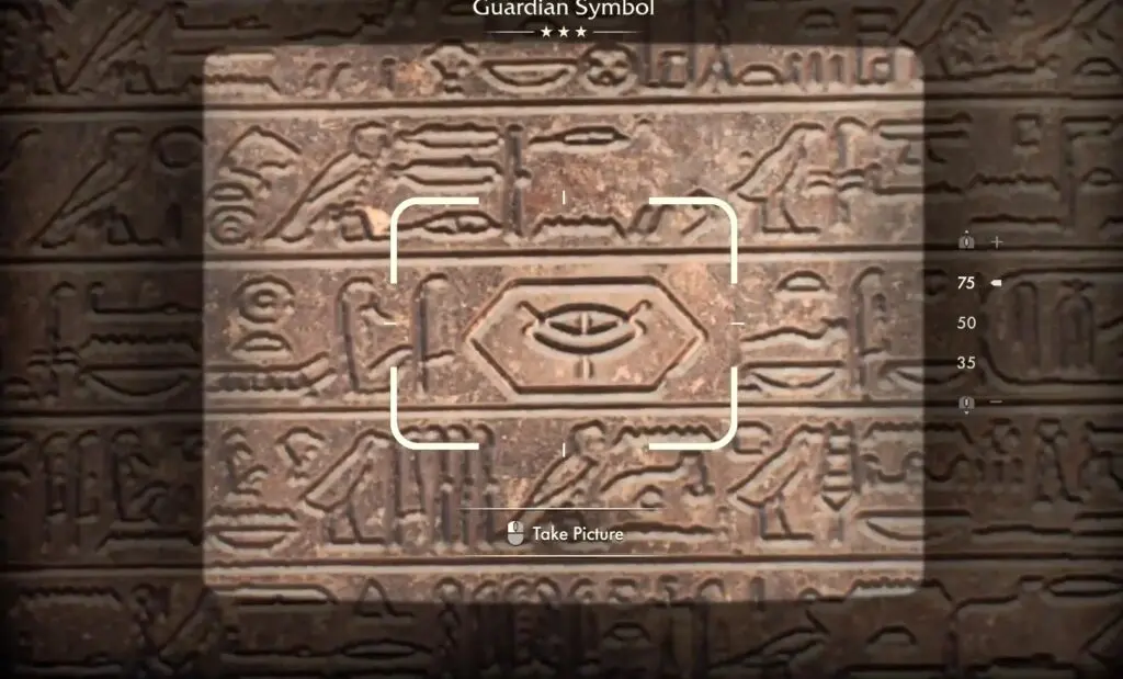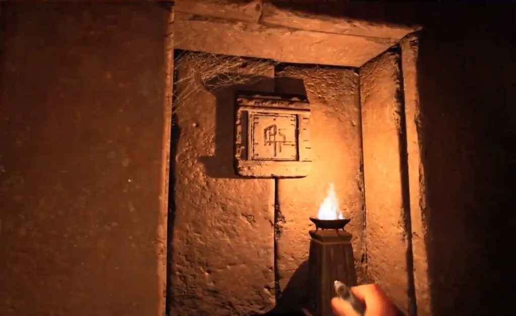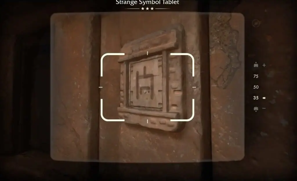 To progress further you need to find the Chamber of Resonance. Search for a tunnel hidden beneath a pile of stone blocks near a small tree. The Nephilim Symbol Marking is on the wall of the tunnel.