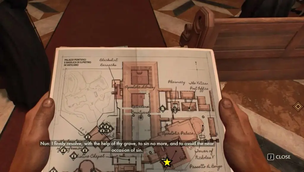 You’ll find a room with Jesus murals in Vatican City’s Underworld. Place an ancient bust on the pedestal to open the secret door where you will find the note.