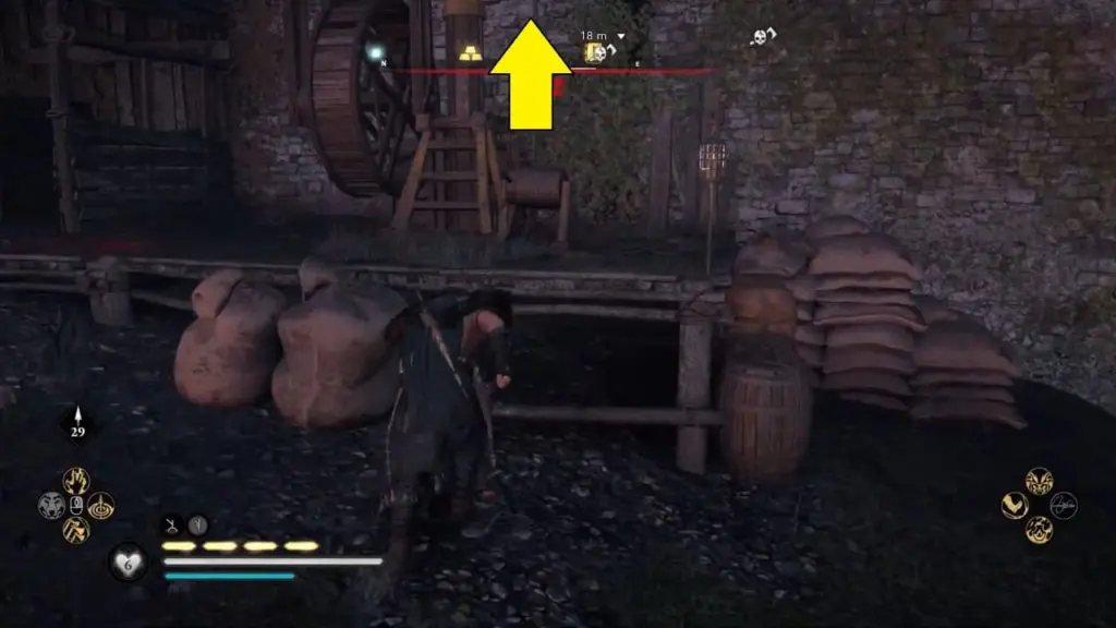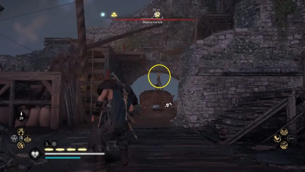 - You need to go above the fortress’s main gate. Use the giant wheel and rope outside the main gate to lift you above to the required level.