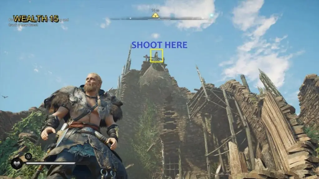 - You find some boarded windows. Shoot these windows and enter the house by climbing to get the bracers.