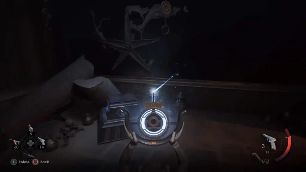 Place the third lens on the small statue and aim the light beam to the small gem in the Dark Man statue’s crown.