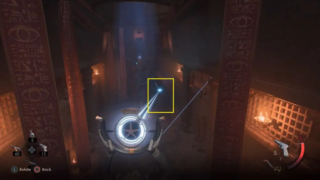 Finally to complete your task, go to the statue located on the crown of Dark Man’s head and direct the light beam to the floor.