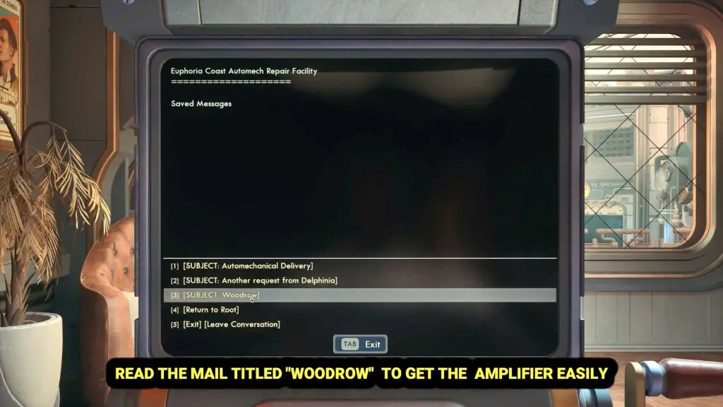 To get the Catalytic amplifier, go to Marshal Donelson’s office and access his terminal. You can safely use it even if Donelson is nearby. Open the terminal log titled “SUBJECT: Woodrow” and read through the entry to get the required information to convince Woodrow.