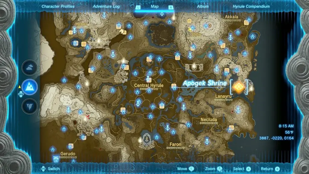 This guide shows the complete walkthrough of the Apogek Shrine in the Legend of Zelda: Tears of the Kingdom game, released on 12th May 2023. The Apogek Shrine is at the location shown in the pictures below.