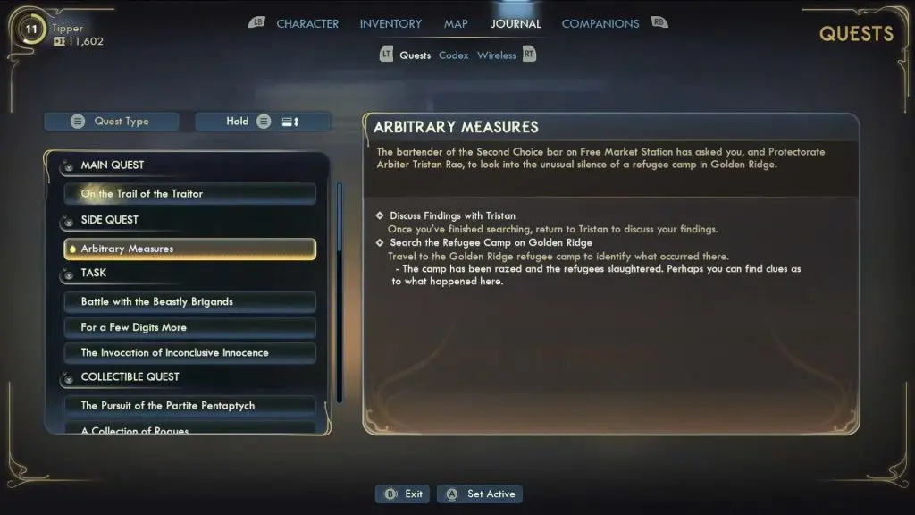 Arbitrary Measures is a side quest in The Outer Worlds 2 that begins at Free Market Station. To start the quest, make your way to The 2nd Choice Saloon. Inside, you’ll find Tristan in conversation with the bartender, Barney “Bruiser” Bass. Speak with them to learn about a series of recent killings that have occurred nearby. Tristan will ask for your assistance in investigating the murders. Accept his request to begin the Arbitrary Measures quest.