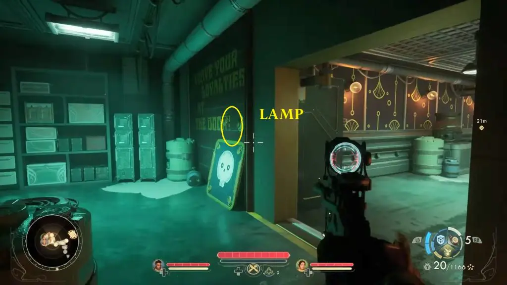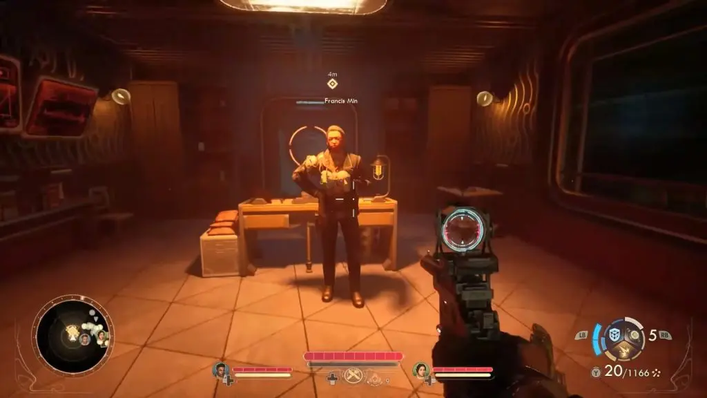 Next, head down to the saloon’s basement and inspect the broken lamp on the door. This will reveal a hidden passage leading to Francis Min’s secret office. Once inside, speak with Francis Min.