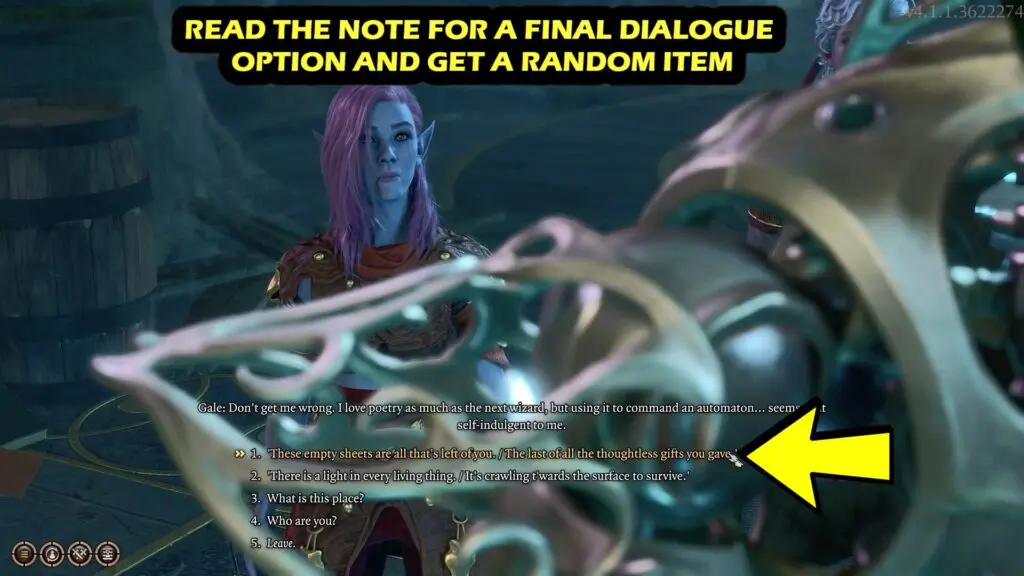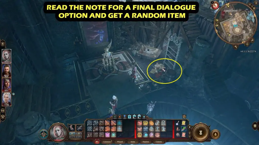 Now before leaving the Arcane Tower, read the notes from the pile of books near Bernard to get a random item.