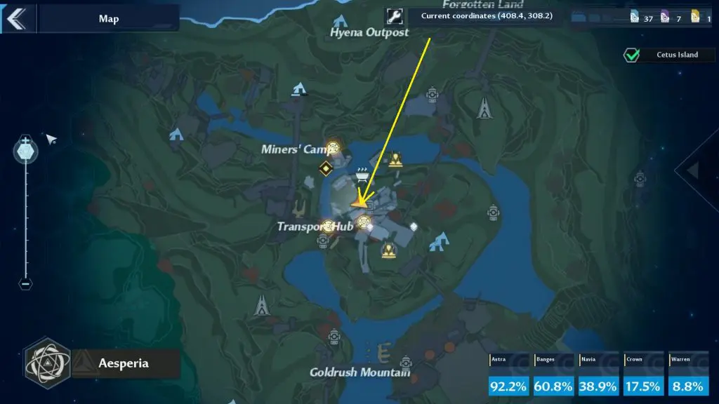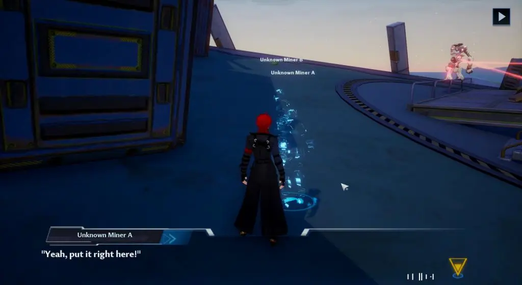 Fast travel to Lumina. Then climb up the deck and talk to the Unknown Miners as shown in the picture below.