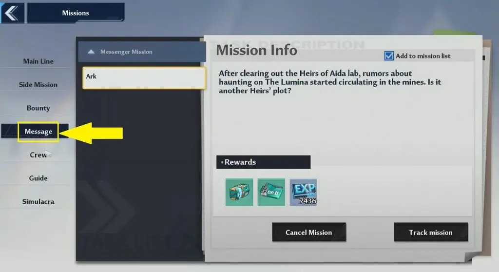 You will get the quest by reading a “Mysterious Letter” at the coordinates (406, 306) in the parliament as shown in the pictures below. If you are unable to interact with the letter, that means you have already read it. In that case, open the “Missions” and go to the “Message” tab to track the Ark Quest as shown in the fourth picture below.