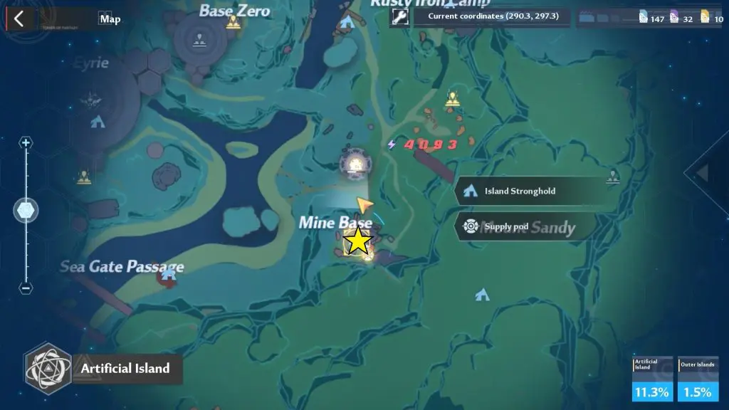 Head to the area to the right of the Mine base to find a breakable rock. You will find a red teleporter on breaking it. Use this to teleport to the station.