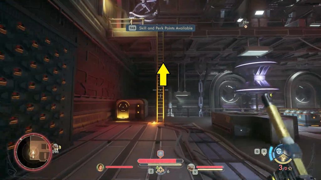 After that, climb the yellow ladder to reach the mid-level area between Deck 2 and Deck 3.