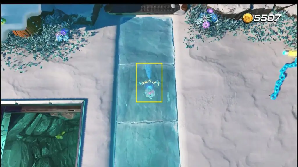 Drop down beneath the ice and pull the chain at the end of the path (under the ice) to collect the puzzle piece.