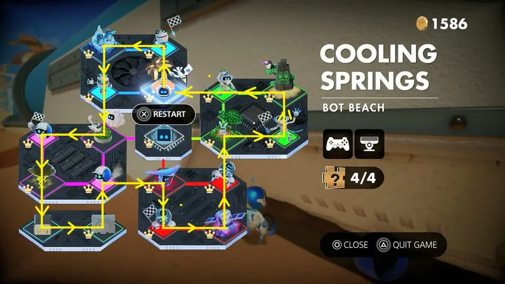 This guide shows the location of the Special bot in the Cooling Springs in Astro’s Playroom. This riddle was released on 2nd August 2024. The remaining trophies of the DLC pack are time-locked. They will be released sequentially leading up to the release of the upcoming sequel, Astro Bot. The final riddle will be released on the day of the release of the upcoming sequel, Astro Bot, on 6th September. Click here to see Astro Playroom Special Bots locations.