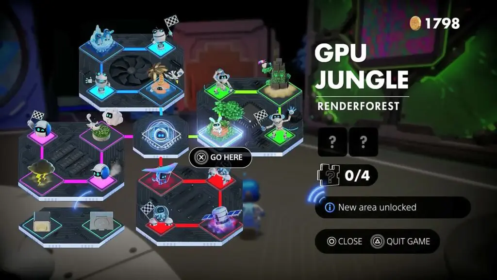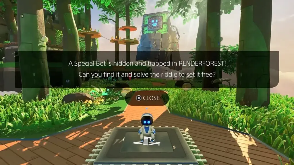 To rescue this special Bot, you must have completed the game and defeated the final boss. You must also be online in order to earn the trophy. Once you are ready, head to GPU Jungle: Renderforest as shown in the picture below.
