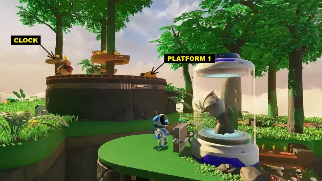 Lady Maria will be locked, and you will need to reach the clock as shown in the picture below to release her. Go to Platform 1 as shown in the image below. Defeat all the enemies there. This will make a tree grow there as shown in the second picture below.