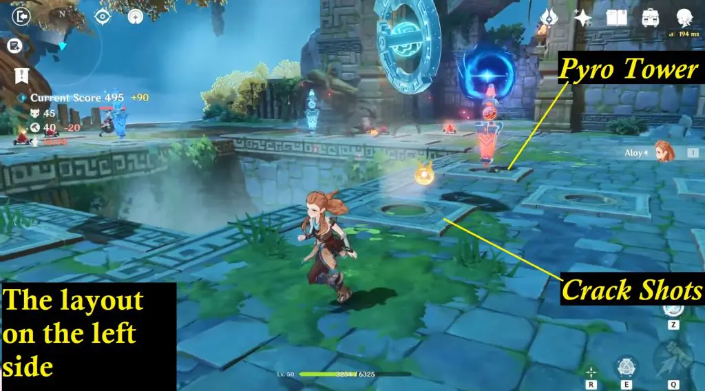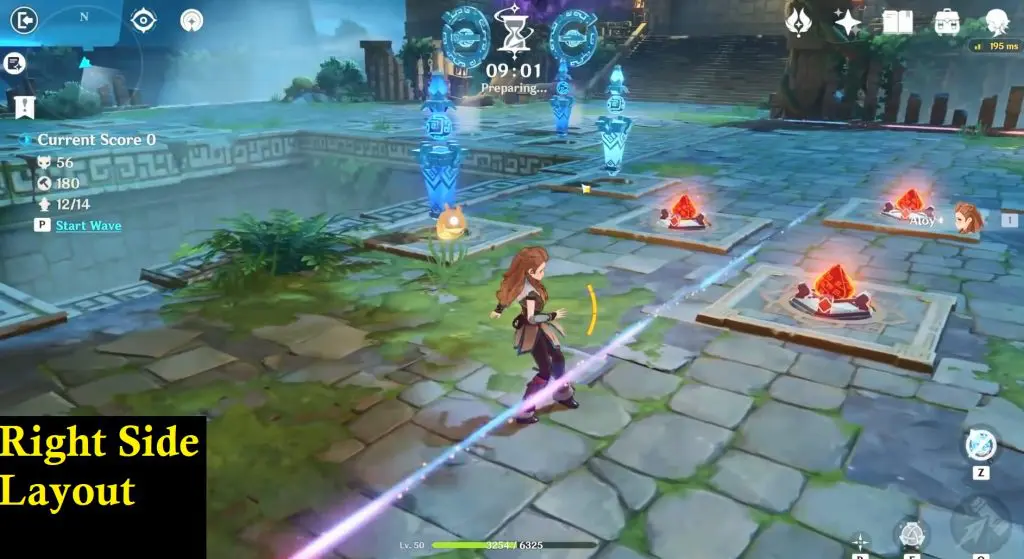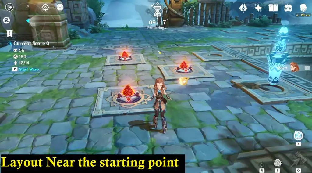 Construction layout of the left side, while standing on the starting point. Initially, we may not be having enough points to place both pyro/Inferno. Start the wave and once you gain enough points, place the inferno/pyro on the left side.