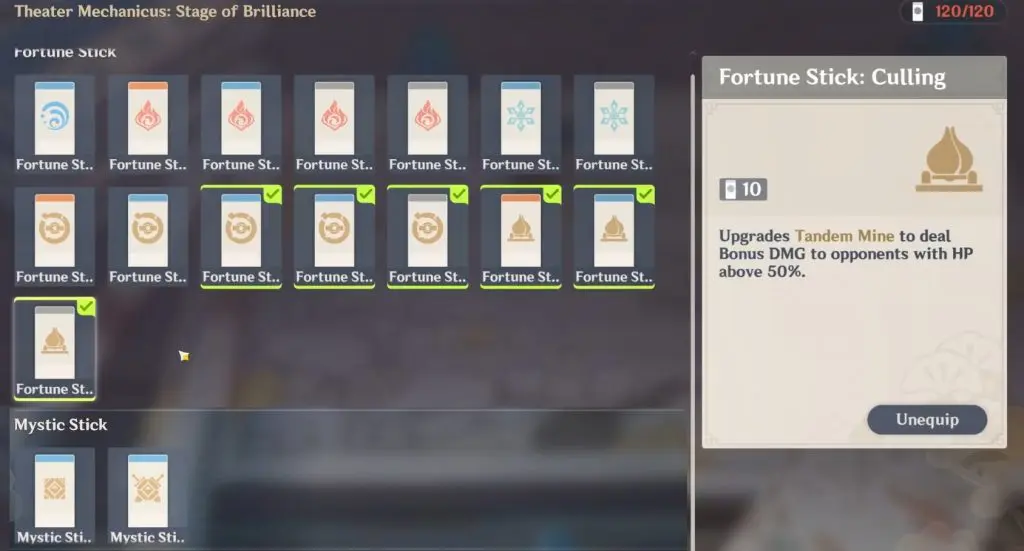 Here are the buffs we used for this stage: Here I have selected only fortune sticks.