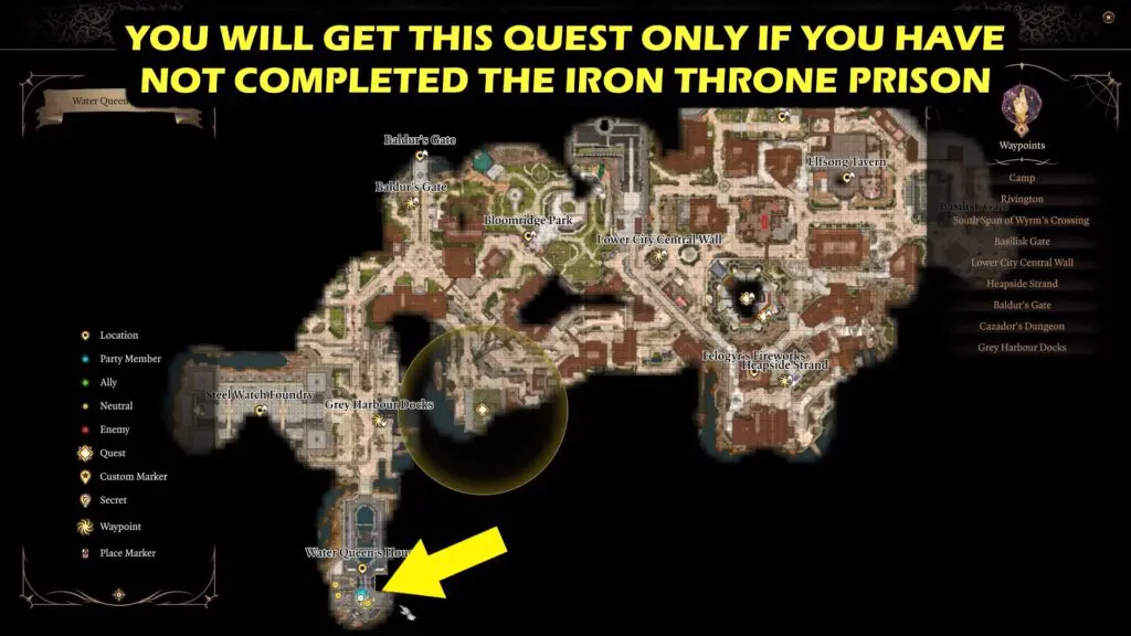 Note: This quest is available only if you have not completed The Iron Throne Prison.