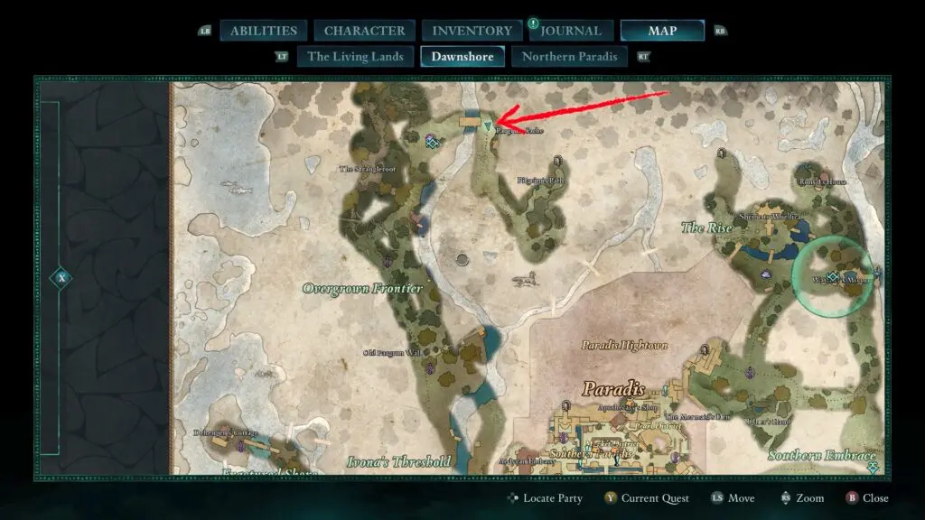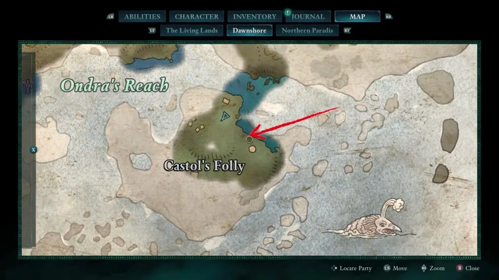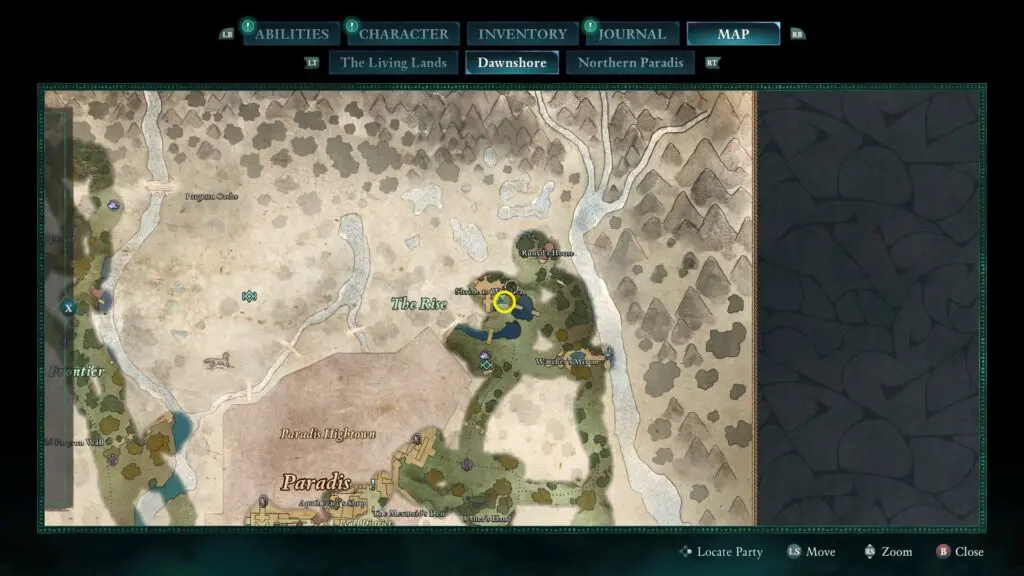 The Antler of the Pursued Stag is north of the Lost Village and requires Yatzli to remove the illusory wall.