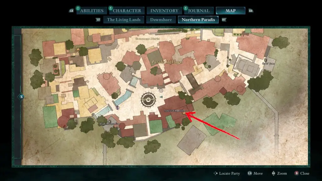 The Broken Crown Jewel is located on a desk in the backroom of Sanza’s Emporium in Northern Paradis.
