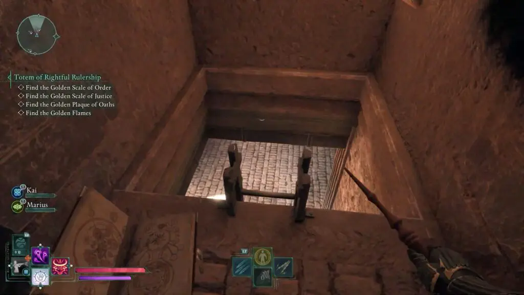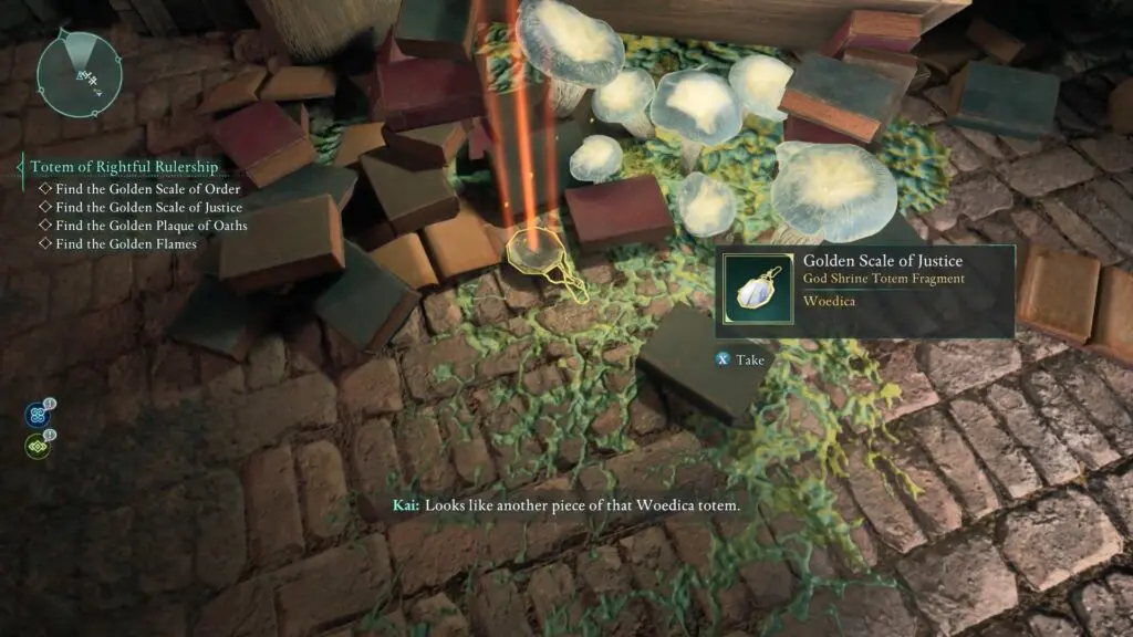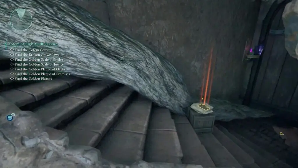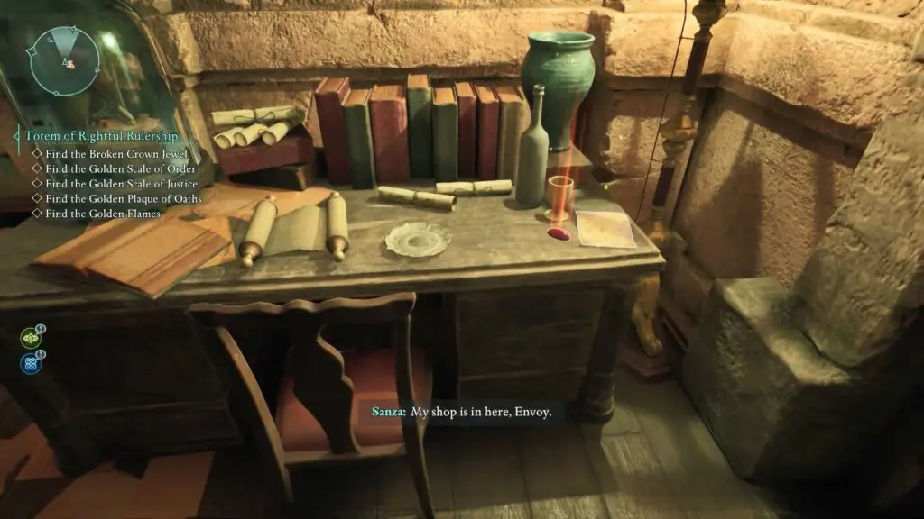 Once inside, clear the spider webs and climb down the ladder. You’ll find the Golden Scale of Justice on the floor next to the bookshelf.