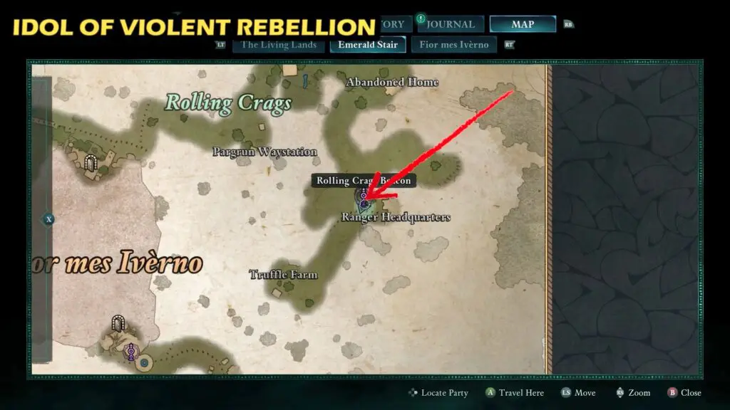 The Idol of Violent Rebellion is located at the top of the Ranger Headquarters.