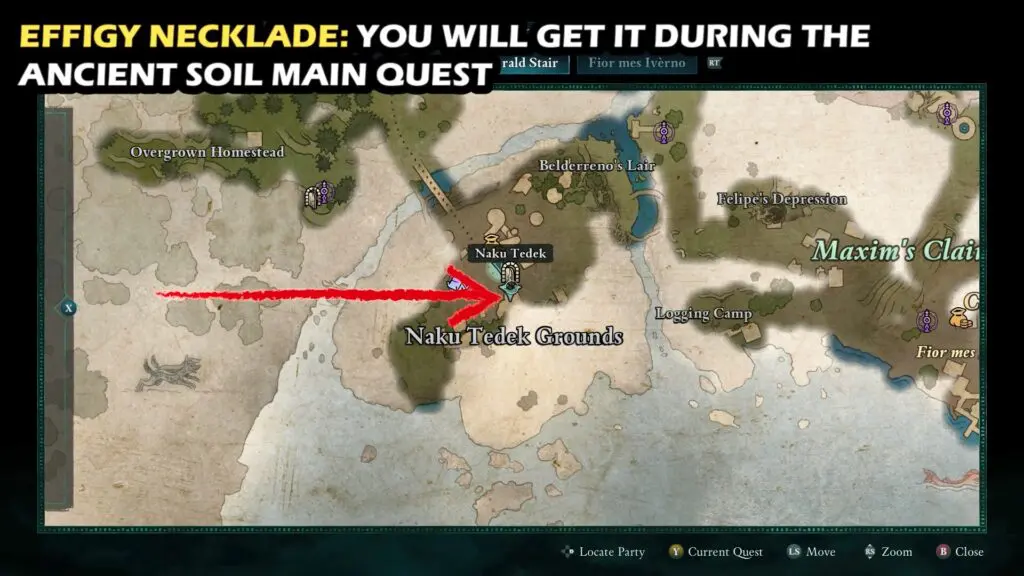 The Effigy Necklace can be found on a stone table inside Naku Tedek. It can be obtained during the “Ancient Soil” main story quest
