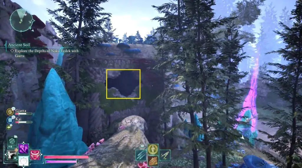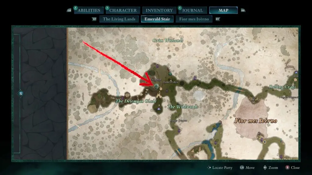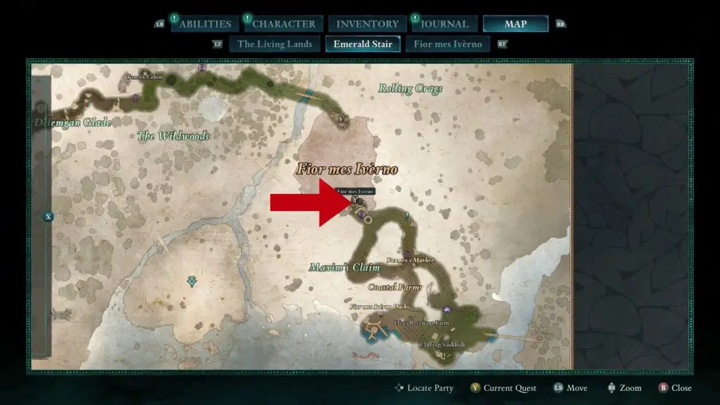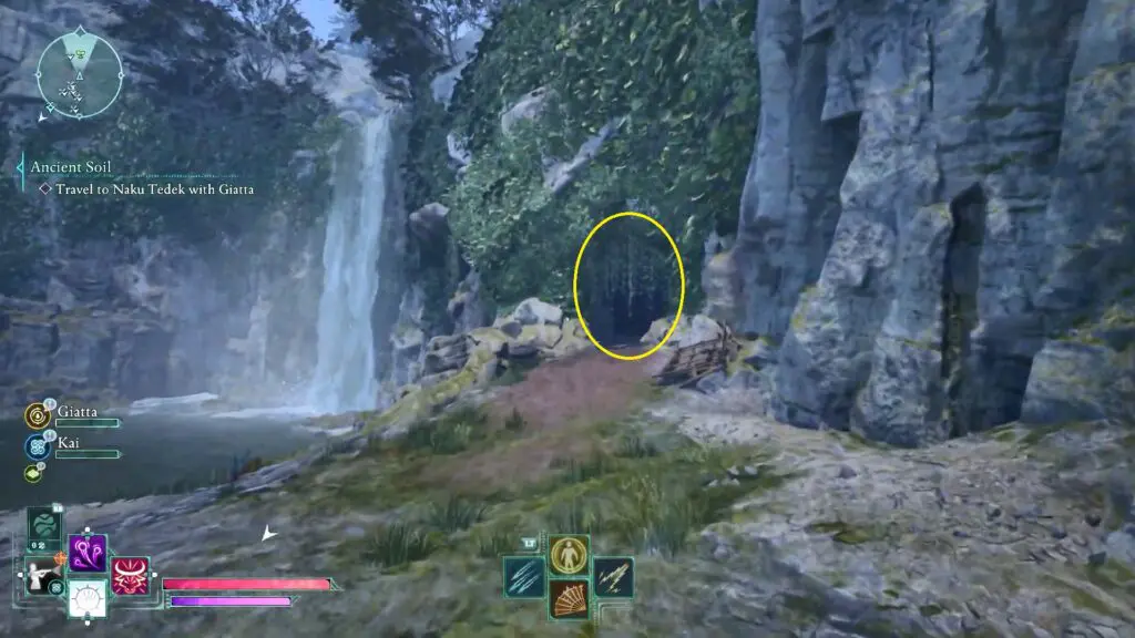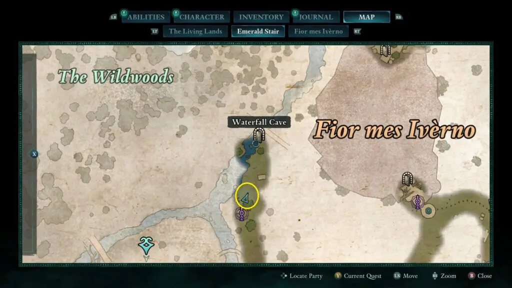 Head west of Fior Mes Iverno until you reach a bridge with a waterfall beneath it. On the right side of the waterfall, you’ll find a cave. Enter the cave and break through the fragile wall.