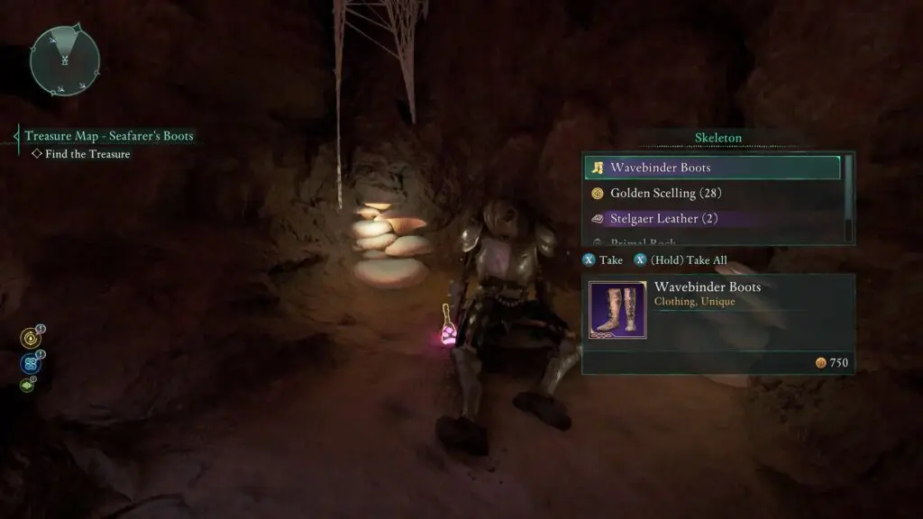 You can find the treasure map inside a cave in the Writhing Ruins. Interact with the skeleton to collect it.