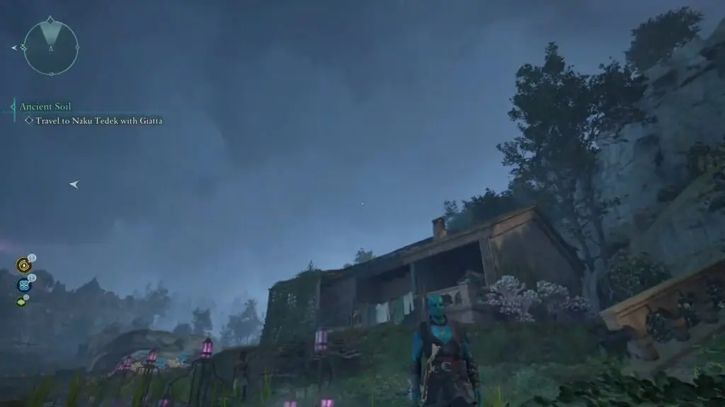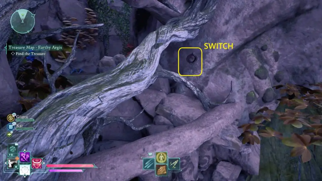 Head west of Tama’s Cabin to find a small tower covered in roots and plants. Walk around to the right side of the tower and look for a small switch hidden among the roots. Press the switch to unlock the tower door, then go inside to find the treasure chest.