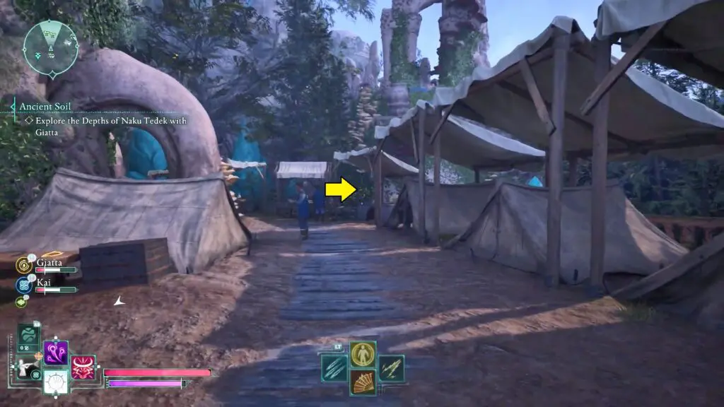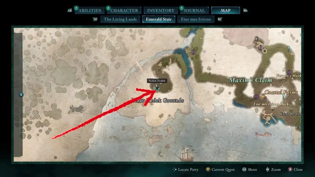 Go to the Naku Tedek Grounds and search the area for tents. Move behind the tent area, then head left to find a structure with a broken wall. Jump through the hole in the structure to find a chest containing the map.