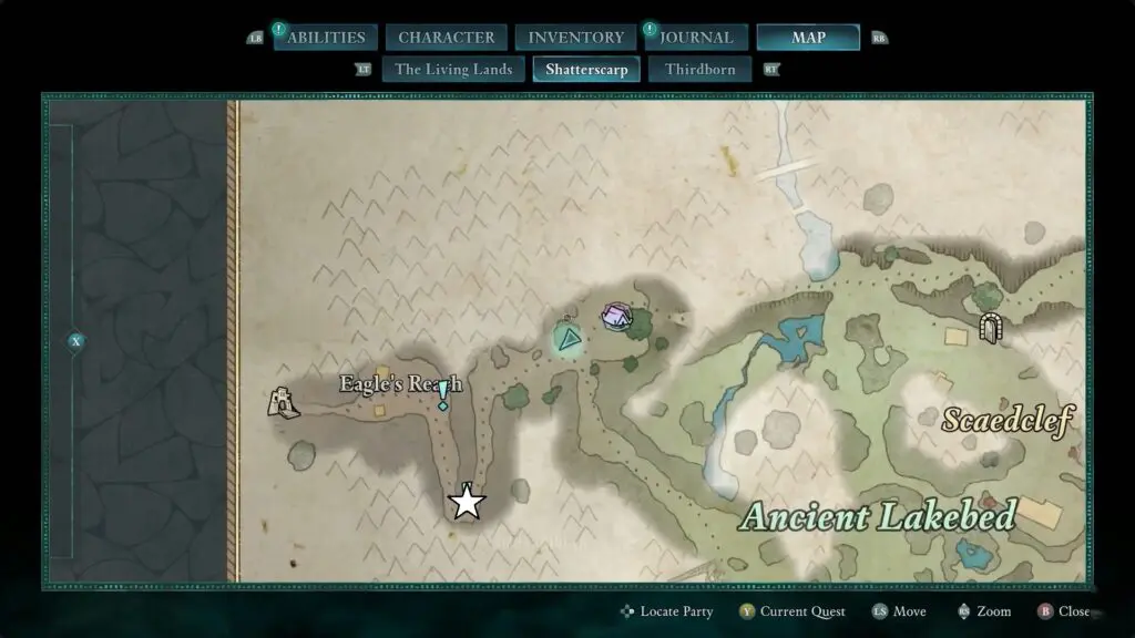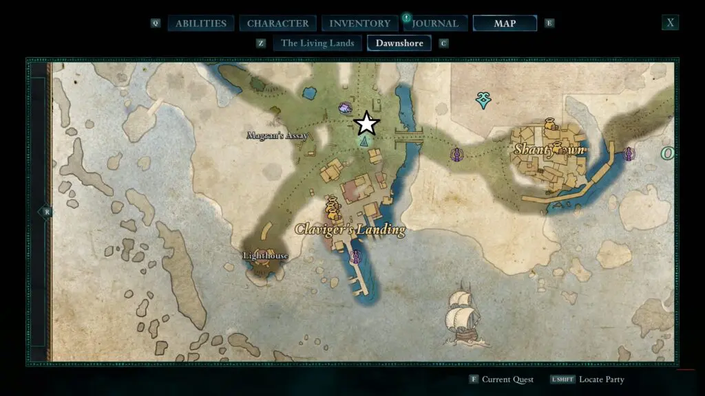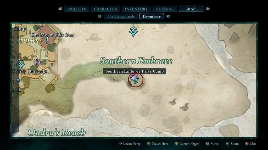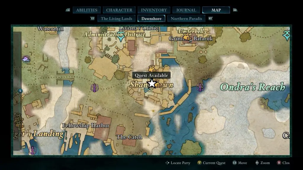 Talk to Sanza after completing Mapping the Living Lands: Dawnshore Side Quest.