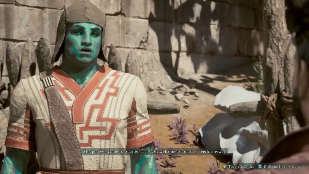 Talk to the Moapo in the southern part of the Shark’s Teeth region in Shatterscarp.