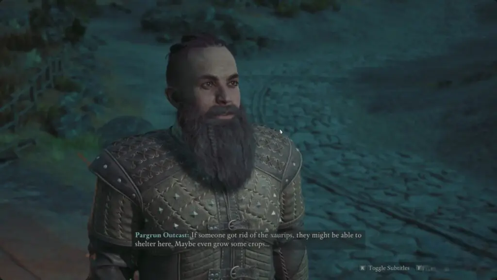 Speak with NPC Pargrunen Outcast, located just north of the Salt Flat Farms.