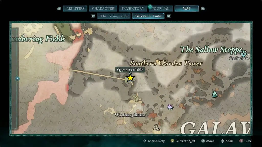 At Southern Warden Tower in northeastern Galawain’s Tusks, grab the ‘Help Wanted’ note from the notice board to start the quest.