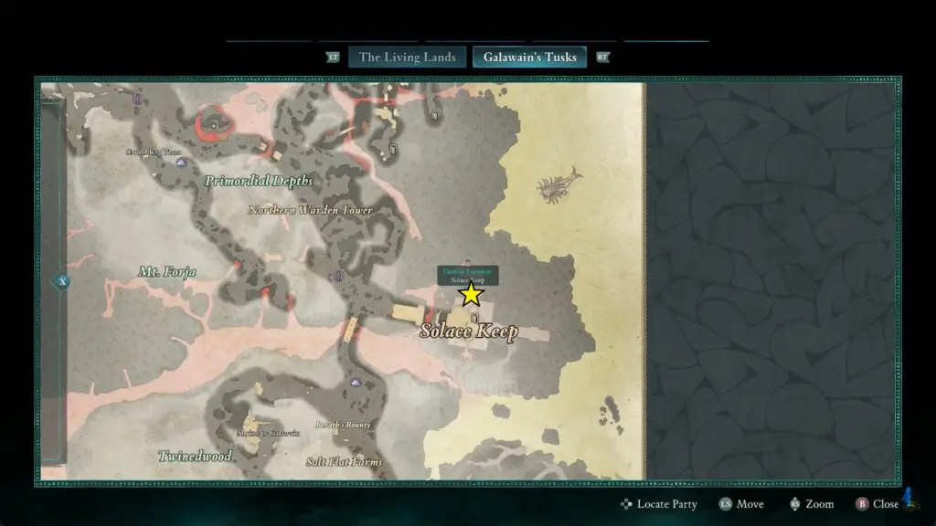 To start the quest, speak with Geofri in the small room to the left of the statue in Solace Keep’s central hub.