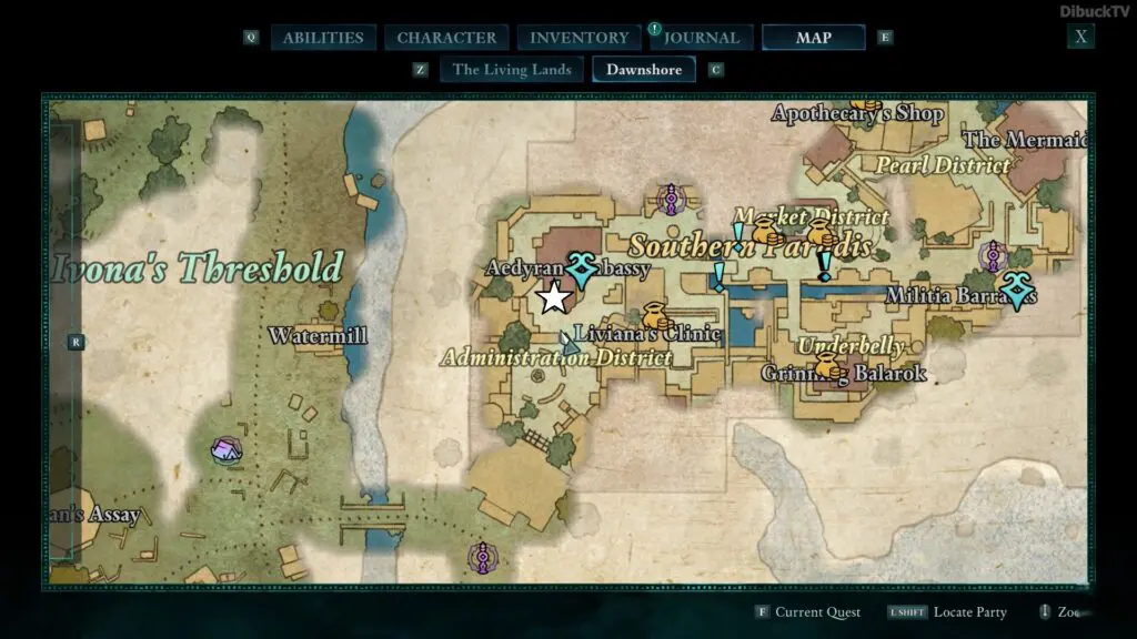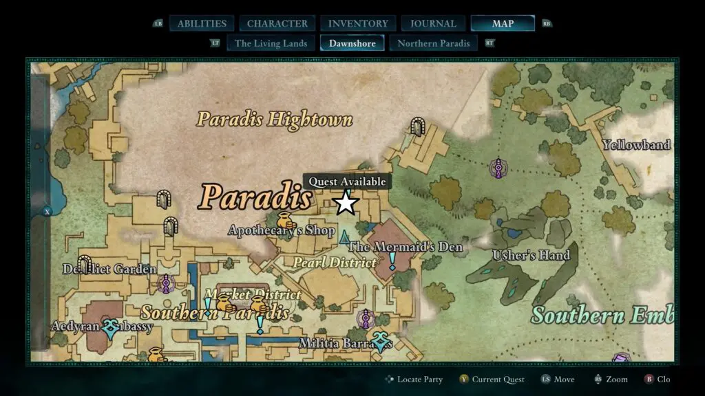 Speak with Ofrye at the entrance of the Aedyran Embassy in Southern Paradis.