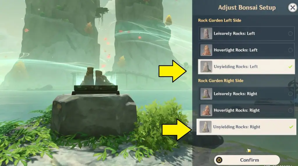 Change the stone formation on both sides of the bonsai to Unyielding Rocks