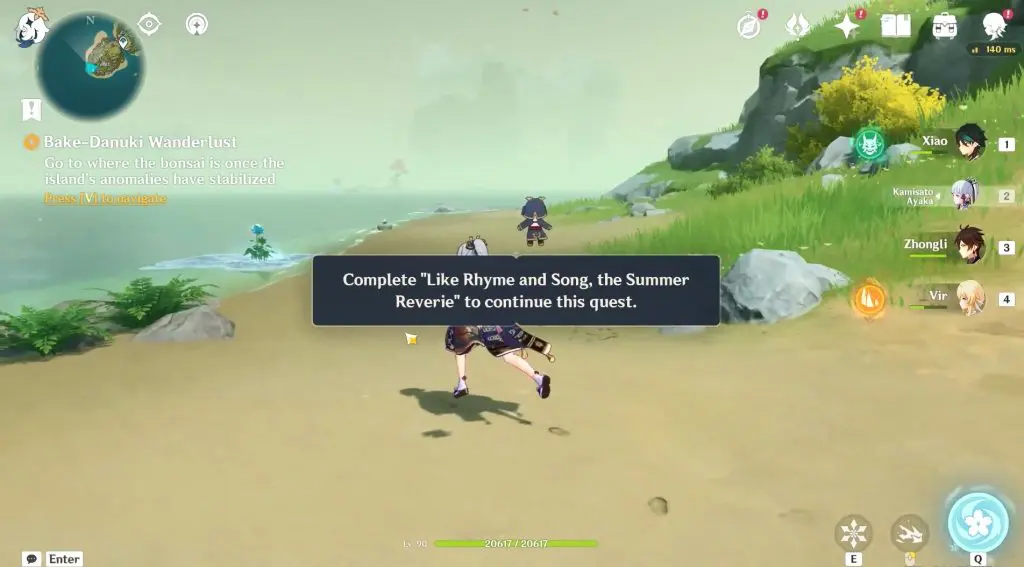 The Bake-Danuki Wanderlust Quest is available after you have completed the quest ”As the Courtyard in Spring Once Appeared”. Head to Bonsai pot and rearrange the Bonsai Hovering Rocks: Right and Hovering Rocks: Left to unlock the quest on Pudding Isle.