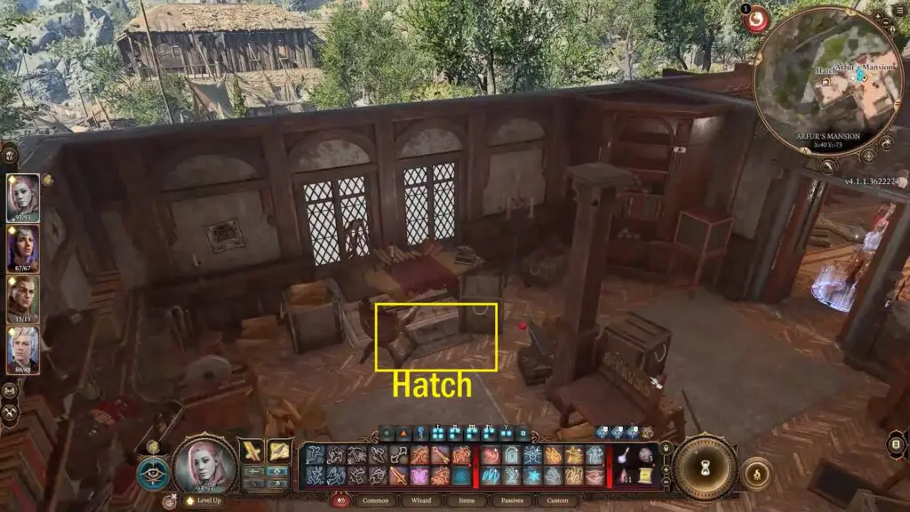 Enter the mansion and proceed to the room straight ahead. You will see a hatch beside a wooden crate. Go down into the basement.