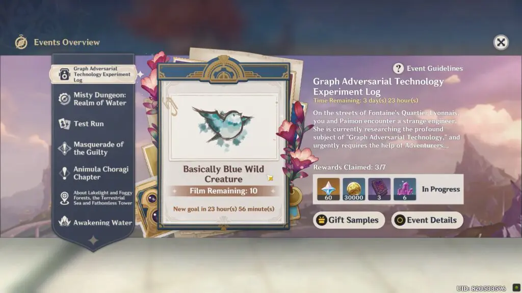 This article will guide you in taking photos of the “Basically Blue Wild Creature“. Basically, Blue Wild Creature Teyvat Product is the goal for Day 3 in the Graph Adversarial Technology Experiment Log Event from Genshin Impact 4.2.