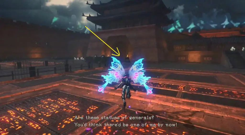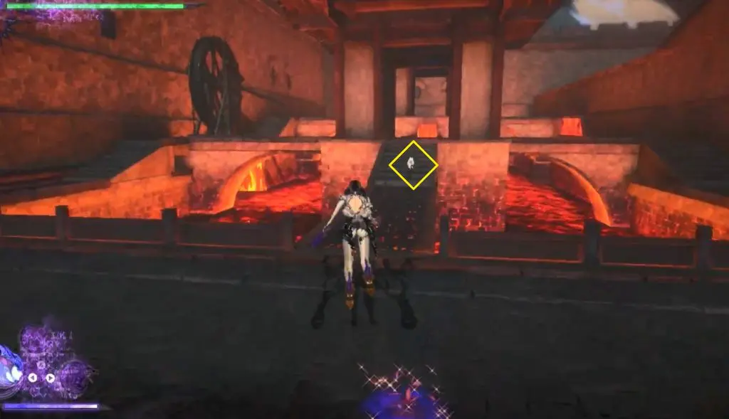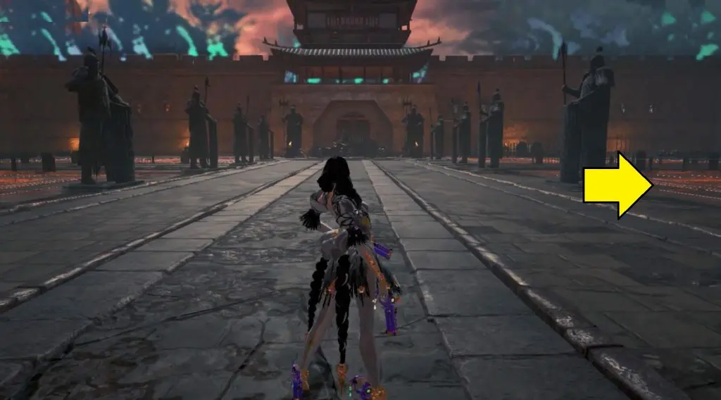 The sixth chapter begins in a vast courtyard. Proceed in the right direction from the main courtyard. Pass through the passage that leads to the lava walkway. Umbran cat can be found on the walkway between the lava.