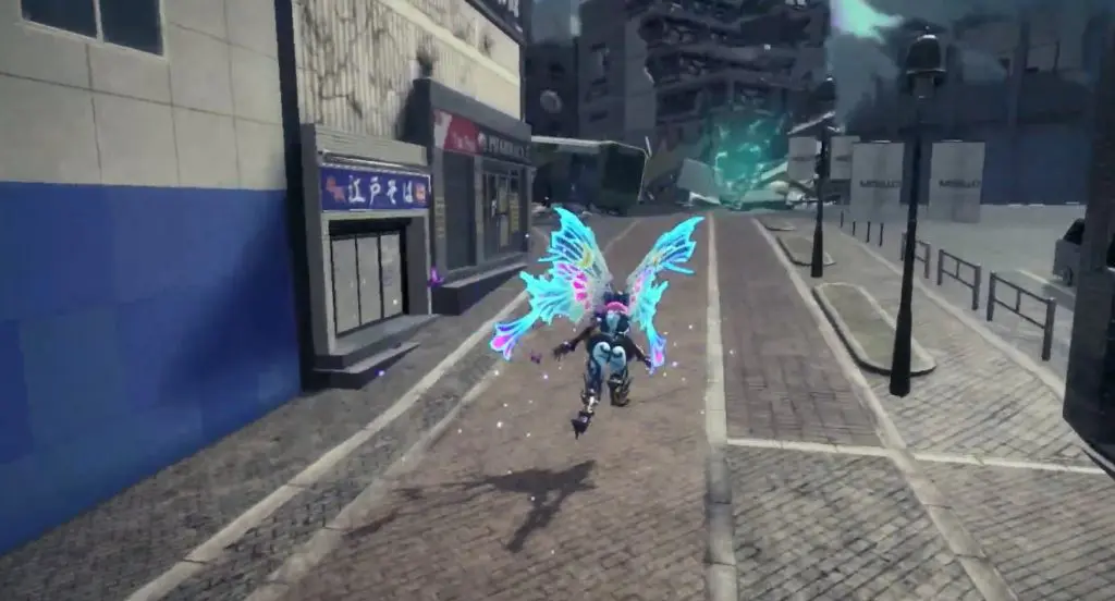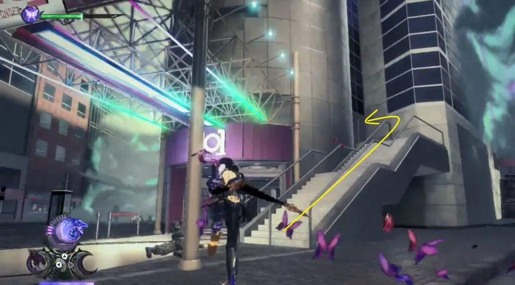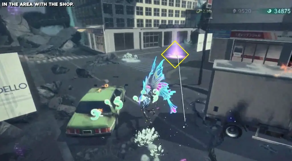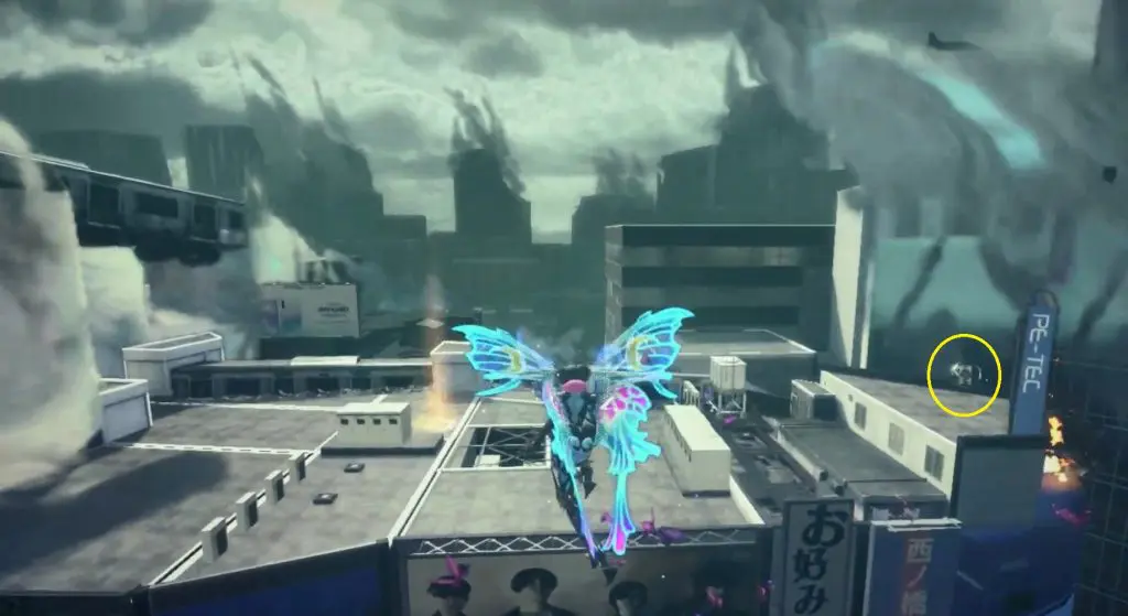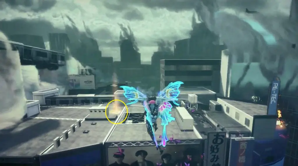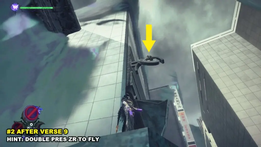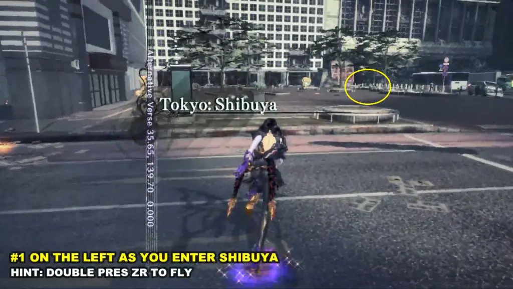 The first Umbran can be located at the start of the Shibuya section. As you enter Shibuya, turn left to locate Kitty hidden at the base of a building. To fly, press ZR twice.