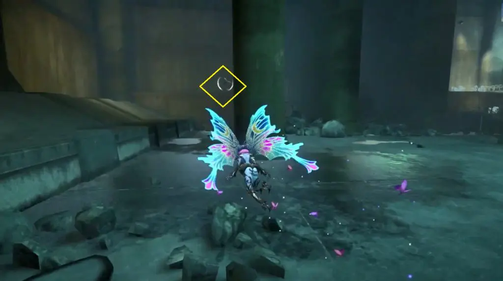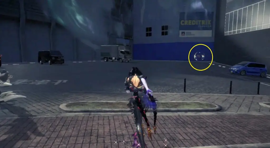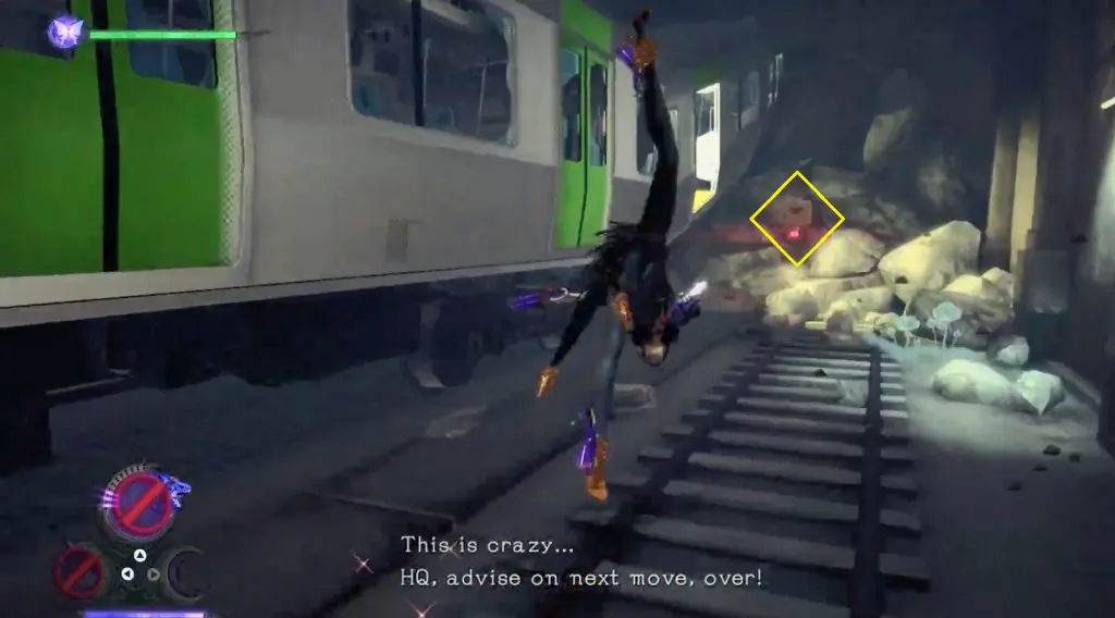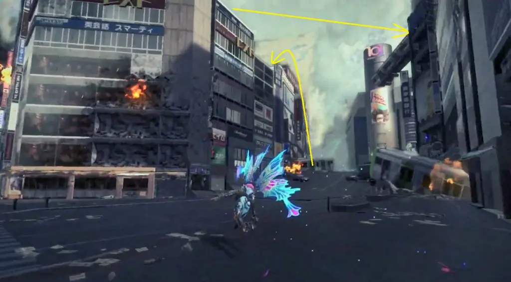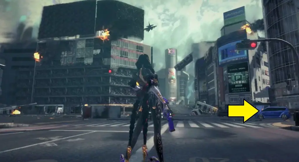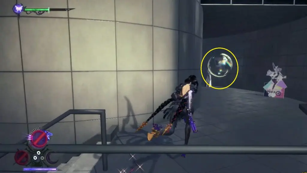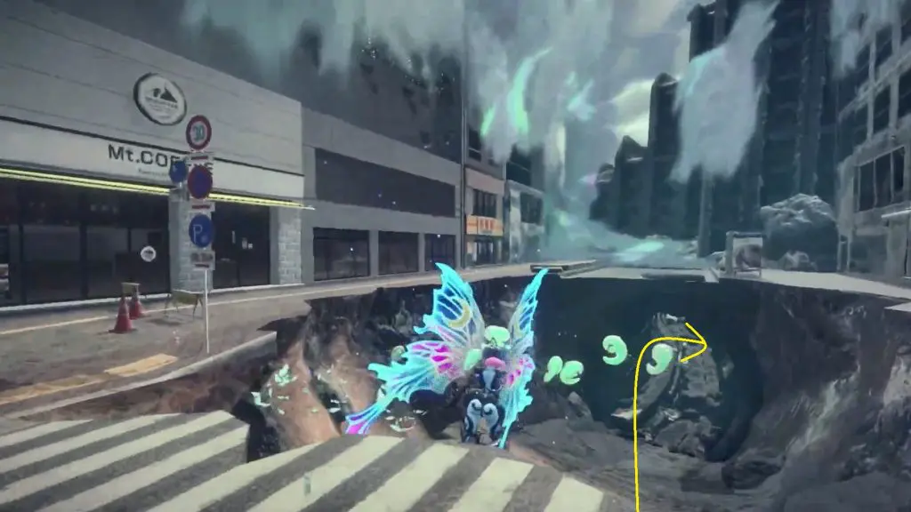The first Umbran can be located at the start of the Shibuya section. As you enter Shibuya, turn left to locate Kitty hidden at the base of a building. To fly, press ZR twice.