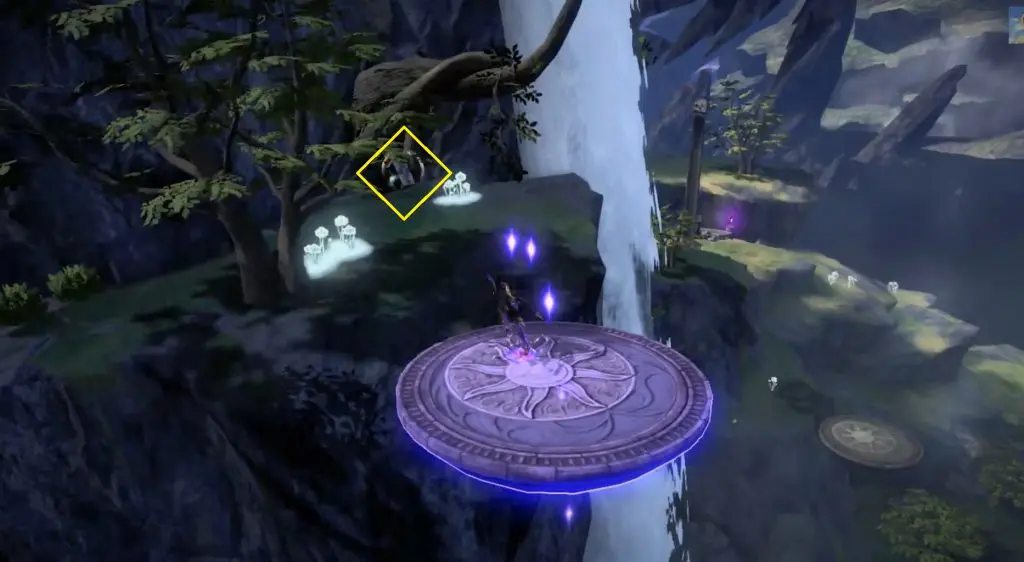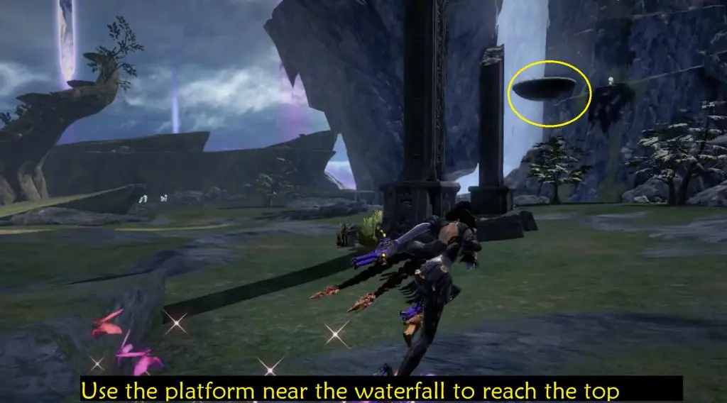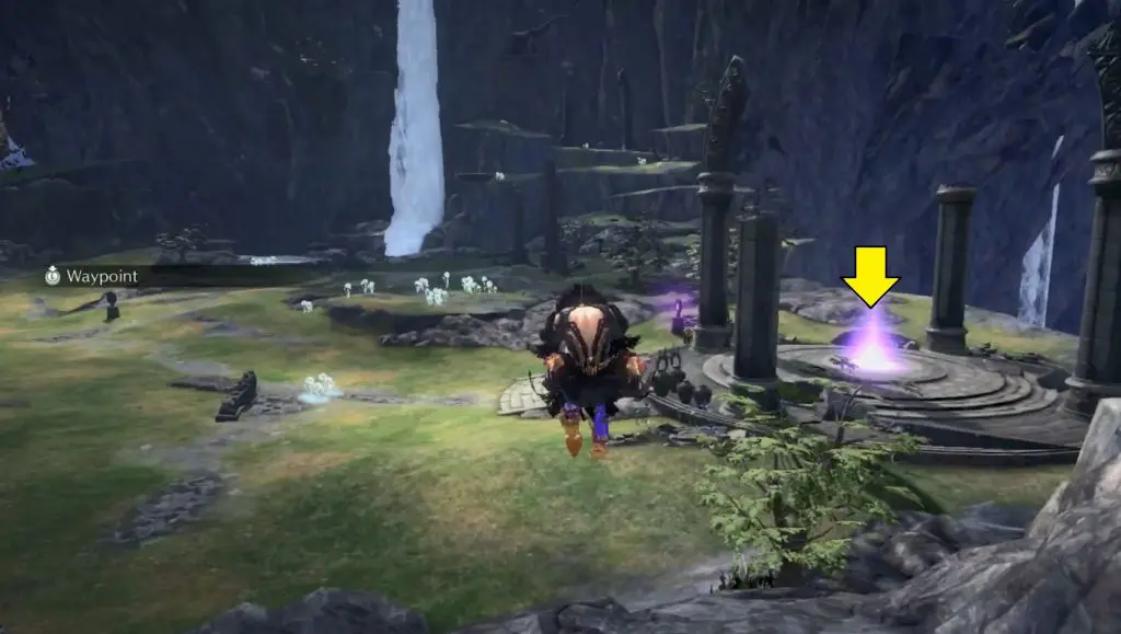 Go to the right side of the waterfall, and pass the small pond to find a key near the mountain wall. Use the key to break the seal behind the waterfall.