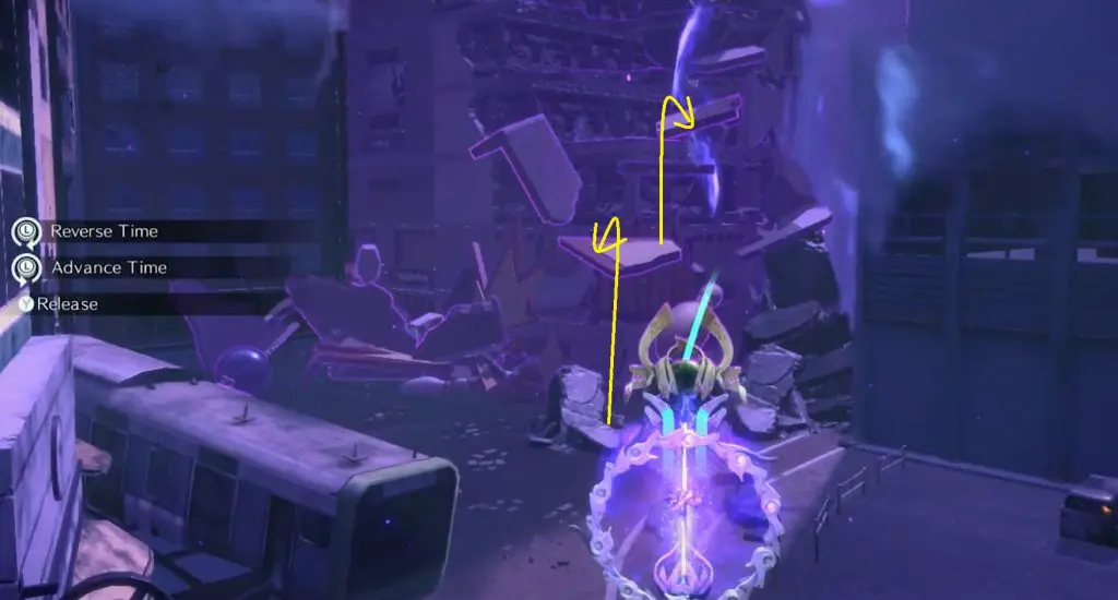 Use the enemy time shift so the parts of the collapsed building make a stairway for you to jump up and grab the Echoes of Memory #2.