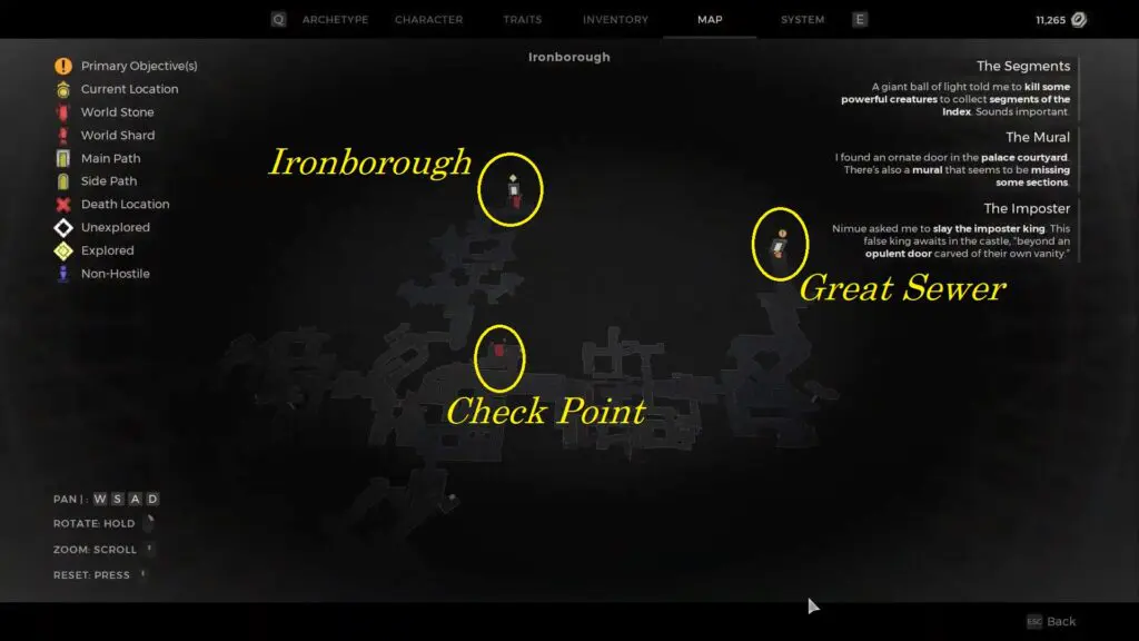The journey from Ironborough to Great Sewers is a straightforward walk without any puzzles or obstacles in your path. You can refer to the image below for guidance on reaching the Great Sewers. Kill any enemies you encounter along the path.