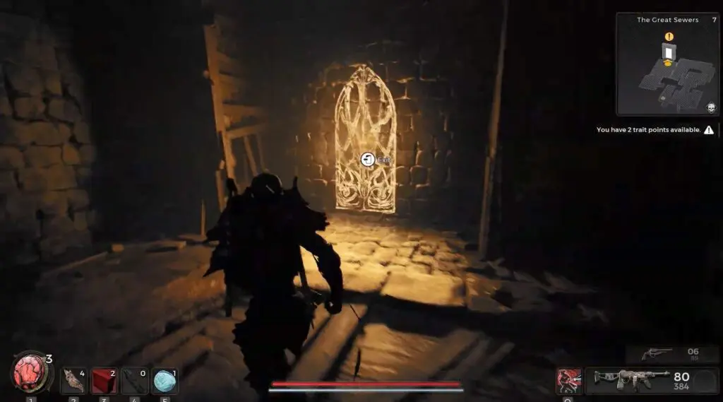 Proceed towards the foggy wall at the end to access Great Sewers, and don’t forget to save the checkpoint once you arrive.