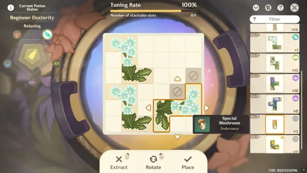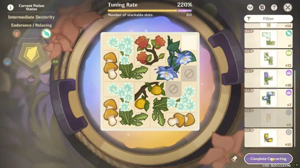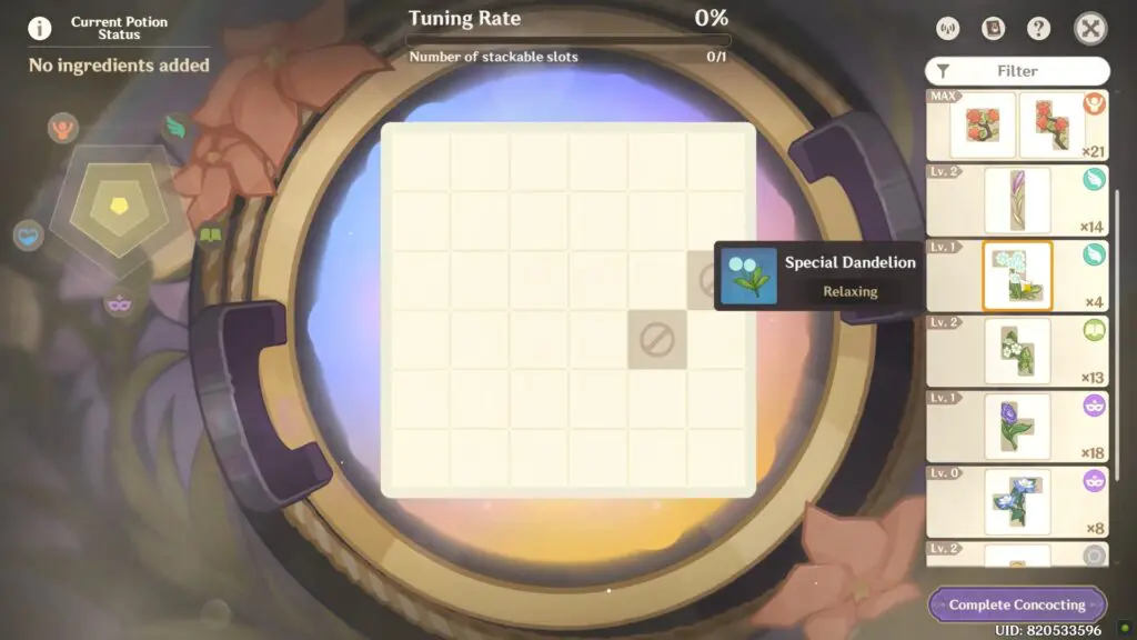 Other ingredients that can be added are Special Glaze Lily as a perception property, Rose for warmth, Special Berries to increase focus, etc.