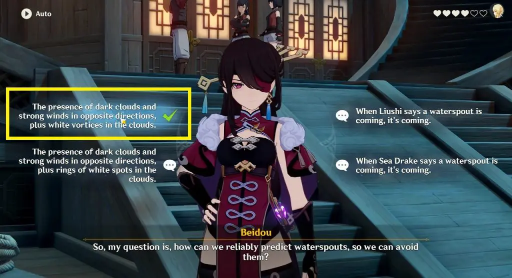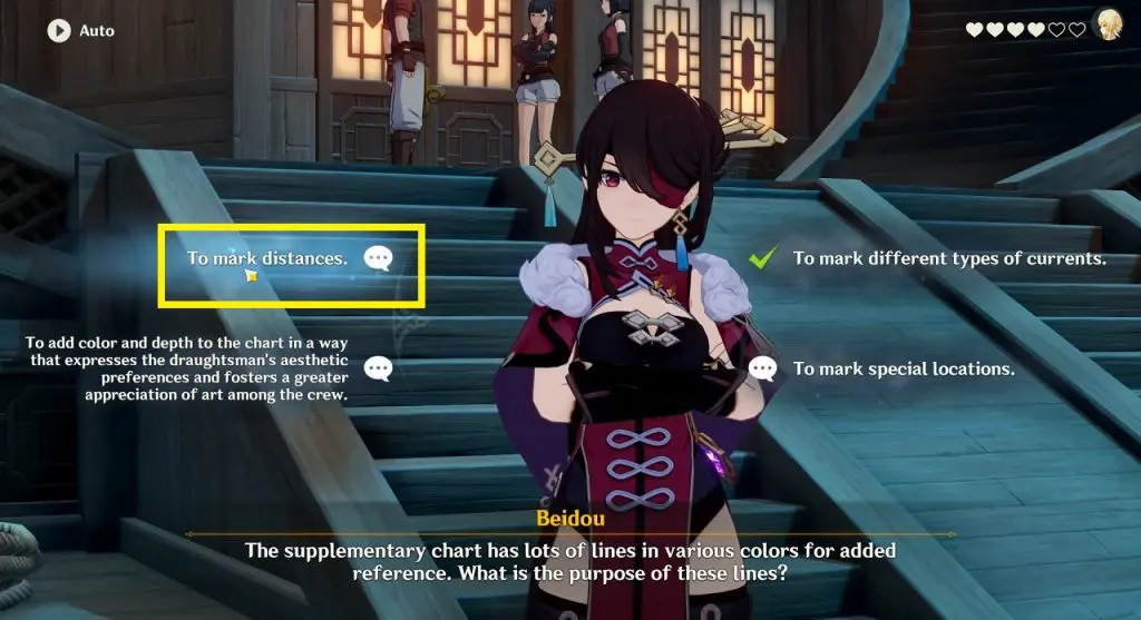 To start the quiz, talk to the crew members. Then go back and talk to Beidou. Select the ‘It was a breeze. I’ve got everything down pat‘ dialogue option to start the quiz.